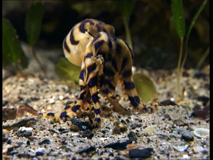 Il polpo ad anelli blu è tra le specie marine più pericolose al mondo. Il piccolo animale, velocissimo, è diffuso a largo delle coste dell’Africa e del Giappone. Il suo veleno è letale anche per l’uomo. La cosa peggiore è che non esiste un antidoto: la tossicità del suo veleno supera il cianuro di ben 10.000 volte.