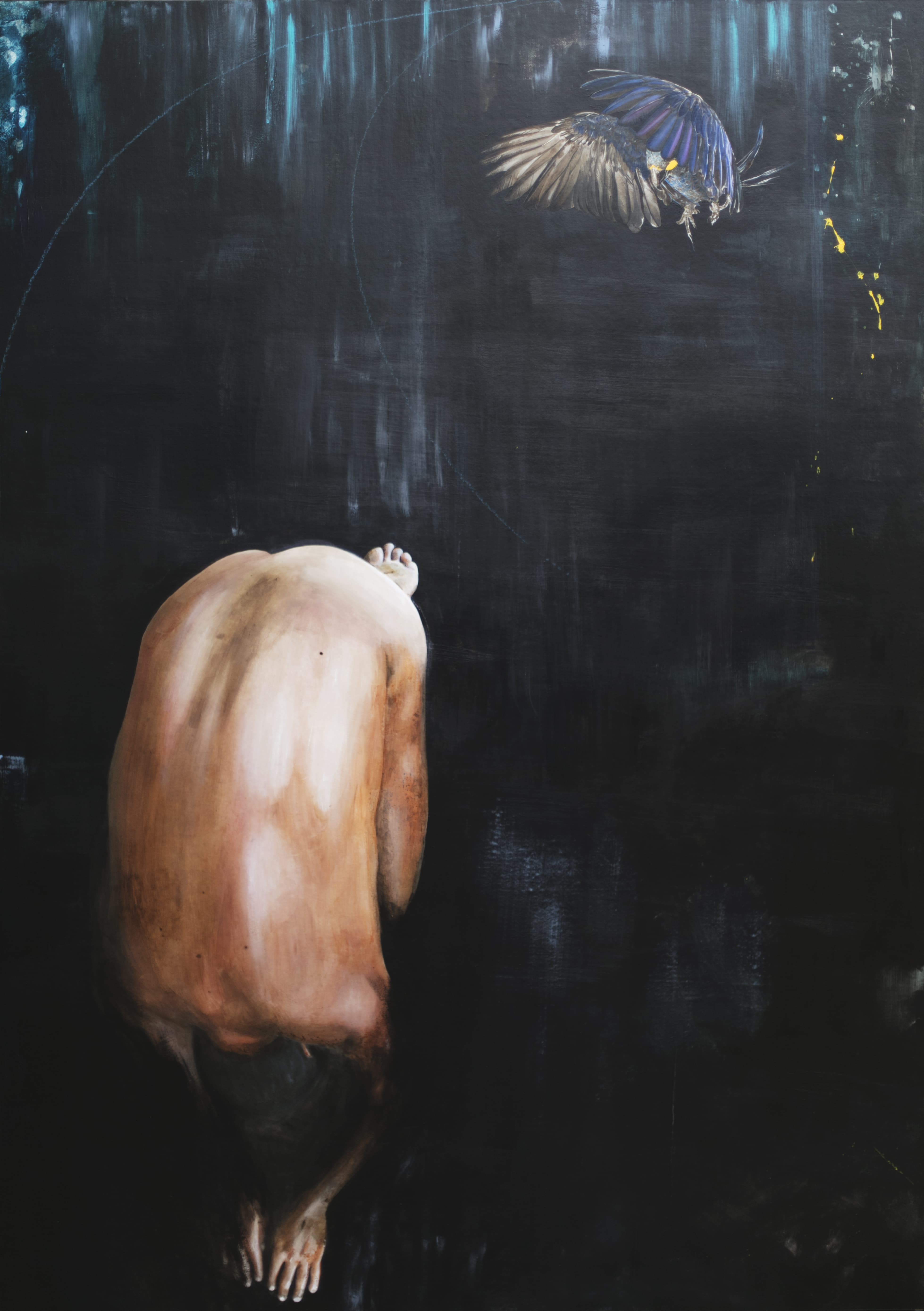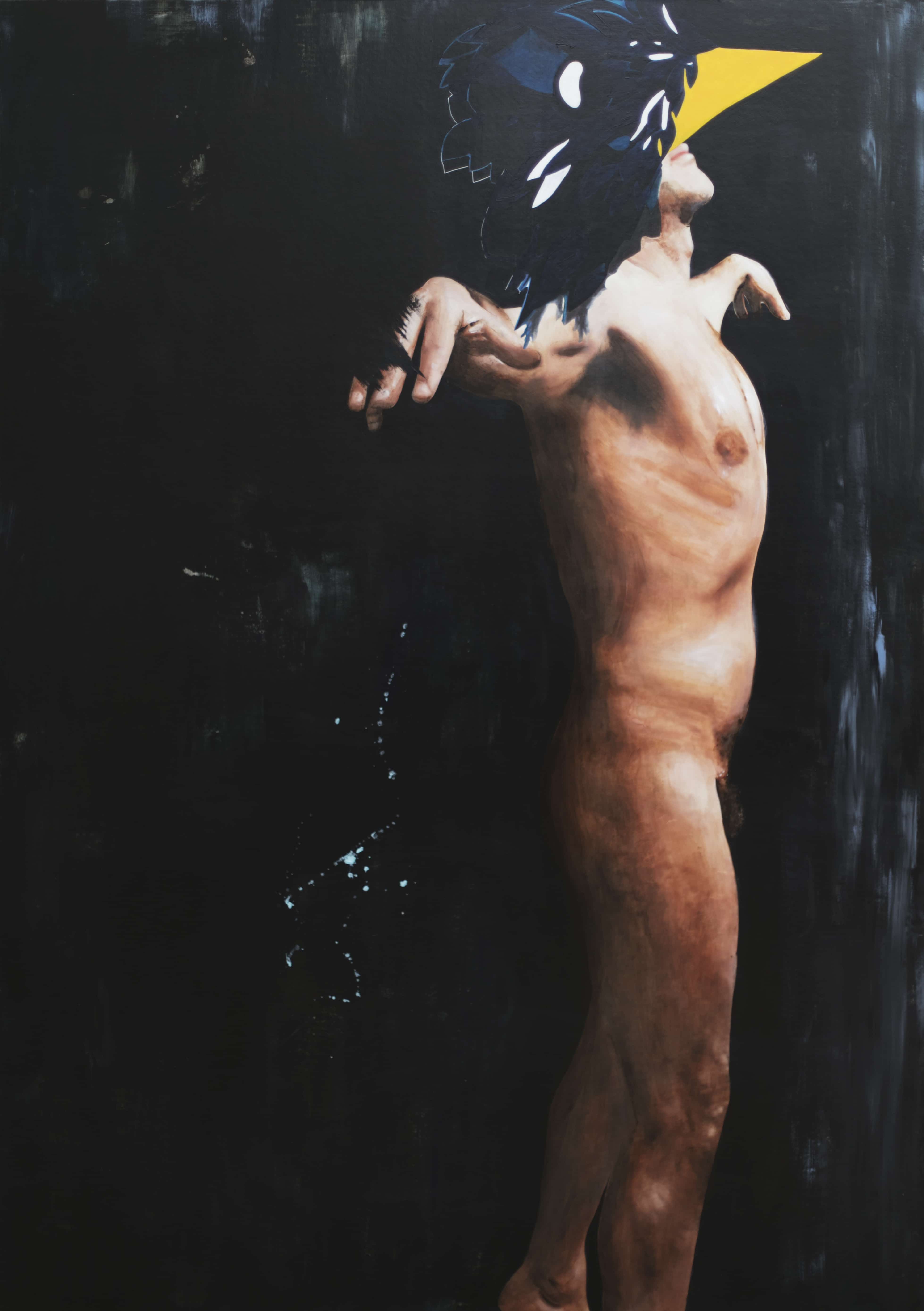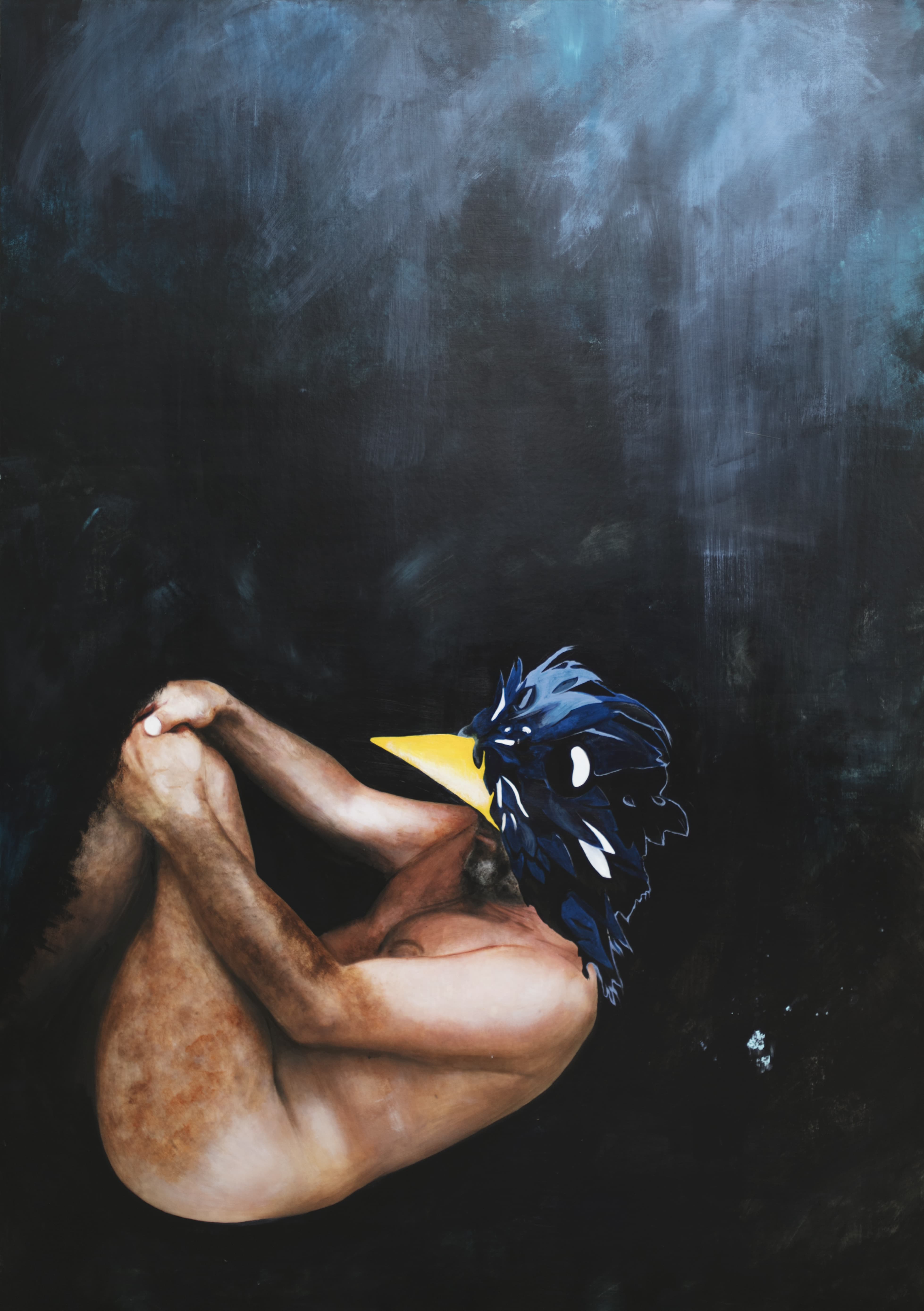 Due sono gli elementi che emergono dai dipinti dell’artista milanese, un uomo, a simboleggiare il genere umano in tutta la sua forza e aggressività, e un uccello, allegoria della libertà.