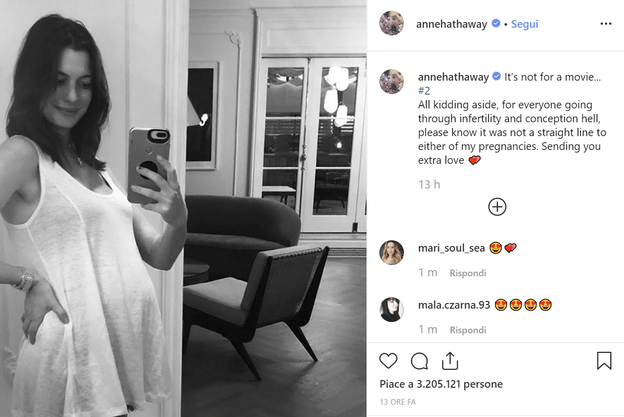 Secondo bambino in arrivo per Anne Hathaway, ma a colpire il popolo del web è stato il messaggio che ha accompagnato l’immagine, dove l’attrice ha esposto per la prima volta la sua vulnerabilità.