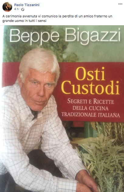 “A cerimonia avvenuta vi comunico la perdita di un amico fraterno un grande uomo in tutti i sensi”, ha scritto su Facebook lo chef Tizzanini del ristorante L’Acquolina di Terranuova Bracciolini.