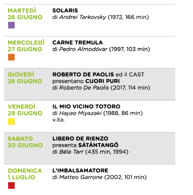 I ragazzi del Cinema America, associazione culturale no profit con sede a Roma guidata da Valerio Carocci, hanno diffuso il programma con le date e le nuove location per le proiezioni, gli incontri con registi e attori e i dibattiti organizzati per l’estate 2018.