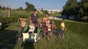 “I benefici sono di natura salutare, economica e di tempo”, prosegue Linda. “Ci ammaliamo poco, i nostri figli sono abituati fin da piccoli a pedalare anche con il freddo o con la pioggia. Risparmiamo tantissimo, quasi un mezzo stipendio l’anno, tanto che possiamo permetterci di lavorare di meno”.
