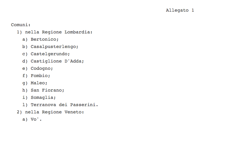 Il Cts ribadisce la necessità di adottare tutte le azioni necessarie per rallentare la diffusione del virus al fine di diminuire l’impatto assistenziale sul servizio sanitario o quantomeno diluire tale impatto nel tempo. Il comitato propone, quindi, di rivedere la distinzione tra c.d. “zone rosse” (gli 11 comuni di cui all’allegato 1 al Dpcm 1 marzo 2020) e “zone gialle” (regioni Emilia Romagna, Lombardia e Veneto, nonché le Province di Pesaro Urbino e Savona). Il Comitato tecnico-scientifico individua le zone cui applicare misure di contenimento della diffusione del virus più rigorose rispetto a quelle da applicarsi nell’intero territorio nazionale, nelle seguenti: Regione Lombardia e province di Parma, Piacenza, Rimini, Reggio Emilia e Modena, Pesaro Urbino ; Venezia, Padova e Treviso, Alessandria e Asti.