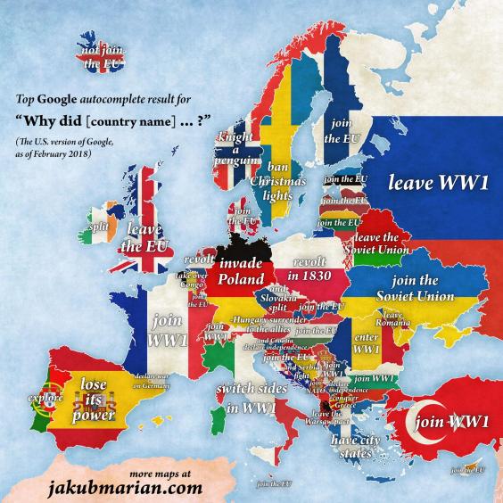 Le domande che facciamo a Google su ogni paese europeo in una mappa