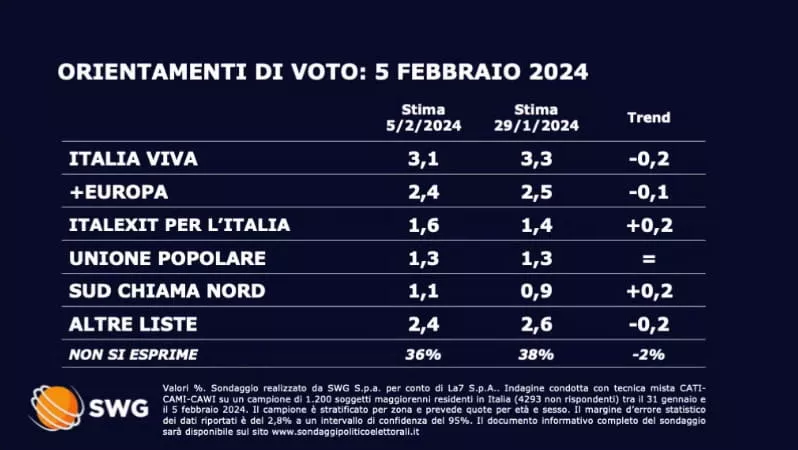 Sondaggi politici elettorali oggi 7 febbraio 2024