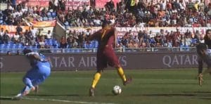 GOL PELLEGRINI ROMA-LAZIO – La Roma segna di tacco, di nuovo. Dopo i due gioielli di Javier Pastore (contro Atalanta e Frosinone), tocca a Lorenzo Pellegrini (sempre nella stessa porta, sotto la curva Nord) che sceglie il derby contro la Lazio per sfoggiare un gol così: tacco spalle alla porta su un pallone vagante in area con il portiere biancoceleste Strakosha fuori causa dopo uno scontro di gioco.