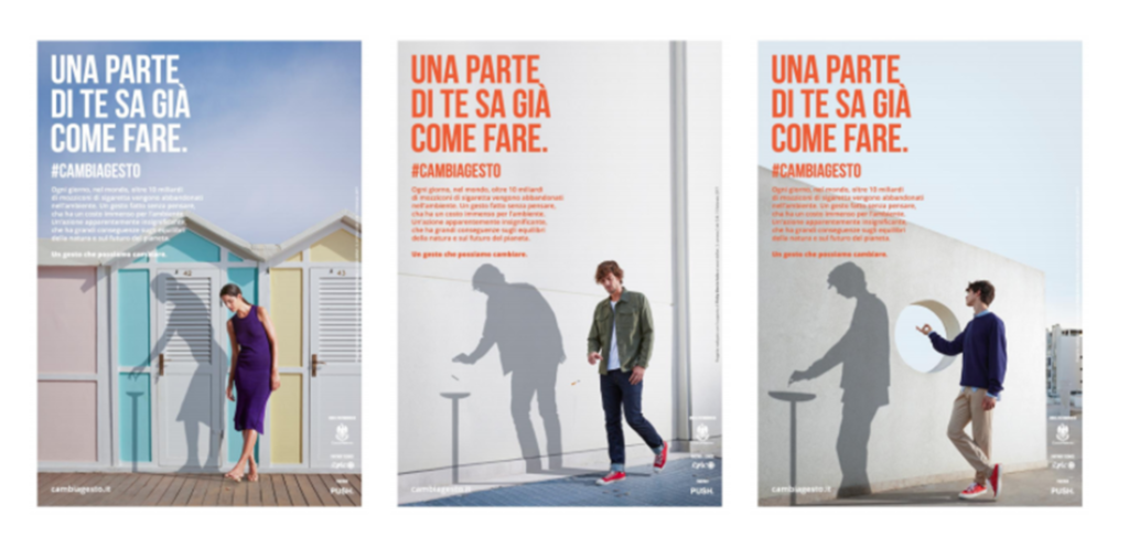 Sulla scorta di questa esperienza, largamente condivisa dagli esperti di comunicazione e della lotta alle dipendenze, #cambiagesto ha deciso di utilizzare quello che in gergo si definisce un tone of voice gentile, puntando su un approccio positivo e un empowerment felicemente sintetizzato dallo slogan “Una parte di te sa già come fare”. Il visual si basa su un’ombra “magica”, che realizza il comportamento corretto, mentre il suo proprietario continua a sbagliare: lo scopo è proprio quello di incitare il cambiamento, invece di biasimare l’atteggiamento sbagliato.