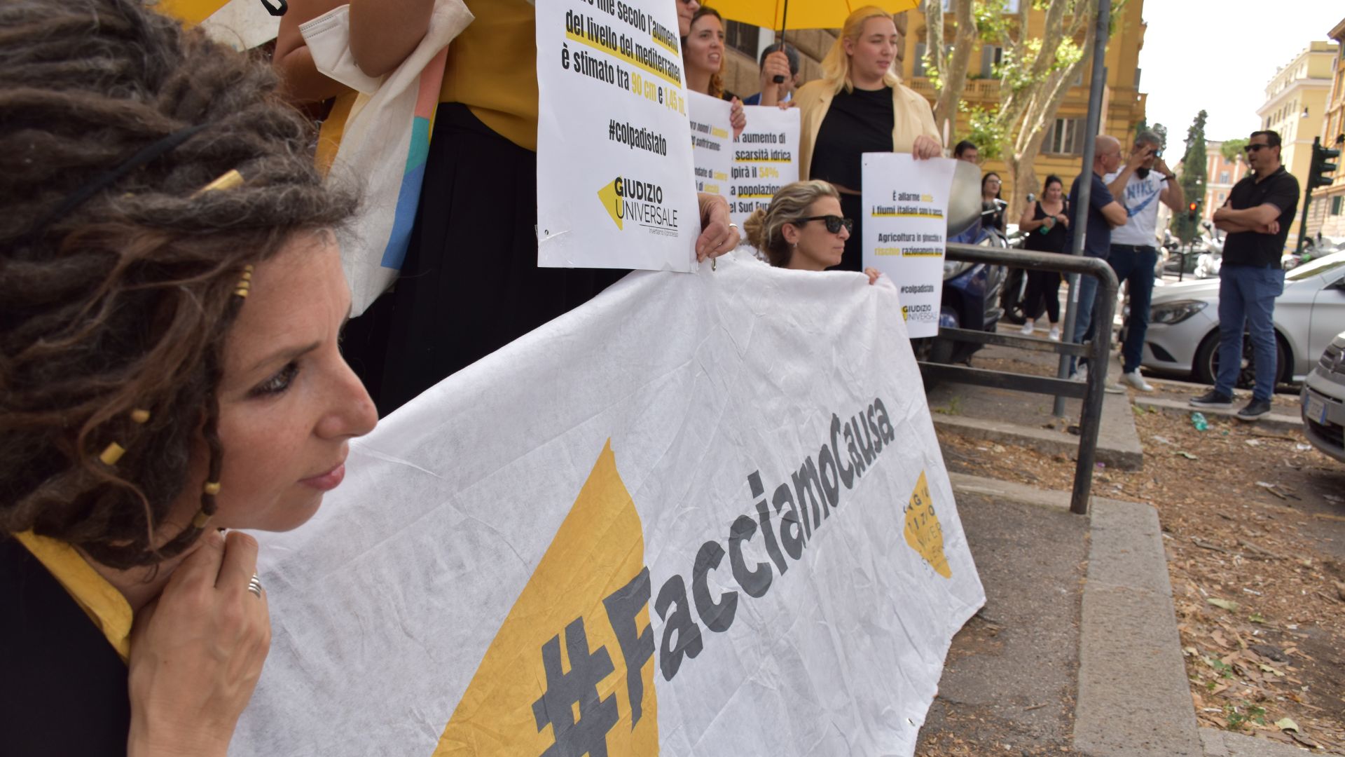 La richiesta è anche quella di condannare l’Italia “all’adozione di ogni necessaria iniziativa per l’abbattimento, entro il 2030, delle emissioni nazionali artificiali di CO2 nella misura del 92 per cento rispetto ai livelli del 1990”. A sud è il primo ricorrente della causa. A un anno dal deposito dell’atto di citazione, le attiviste si ritrovano davanti al Tribunale per la seconda udienza, per la prima volta davanti alla controparte, l’avvocatura dello Stato. Indossano abiti gialli come il logo della campagna che ha lanciato la causa, “Giudizio Universale”, espressione di matrice biblica scelta per evocare l’aspetto legale del giudizio da parte di un magistrato e la natura universale dell’emergenza climatica che imperversa in tutto il mondo. Il giallo indica lo stato di allarme.