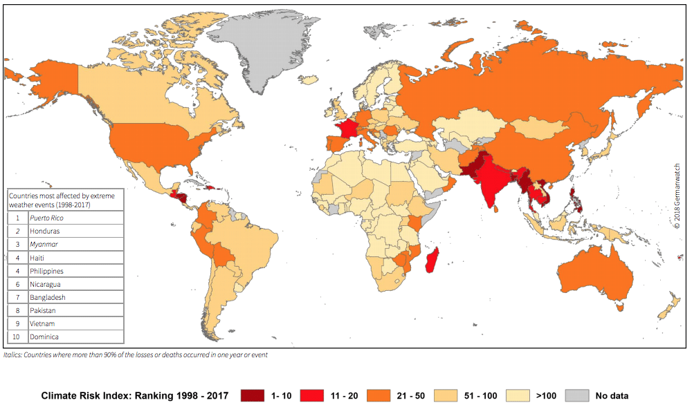 I dati del Global Climate Risk 2019: negli ultimi vent'anni solo 5 paesi hanno registrato un numero maggiore di vittime