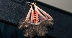 Questo insetto si presenta con ali da falena, un addome tipico da insetto sotto al quale, però, si presentano quattro tentacoli pelosi che rendono questo insetto particolarmente inquietante.