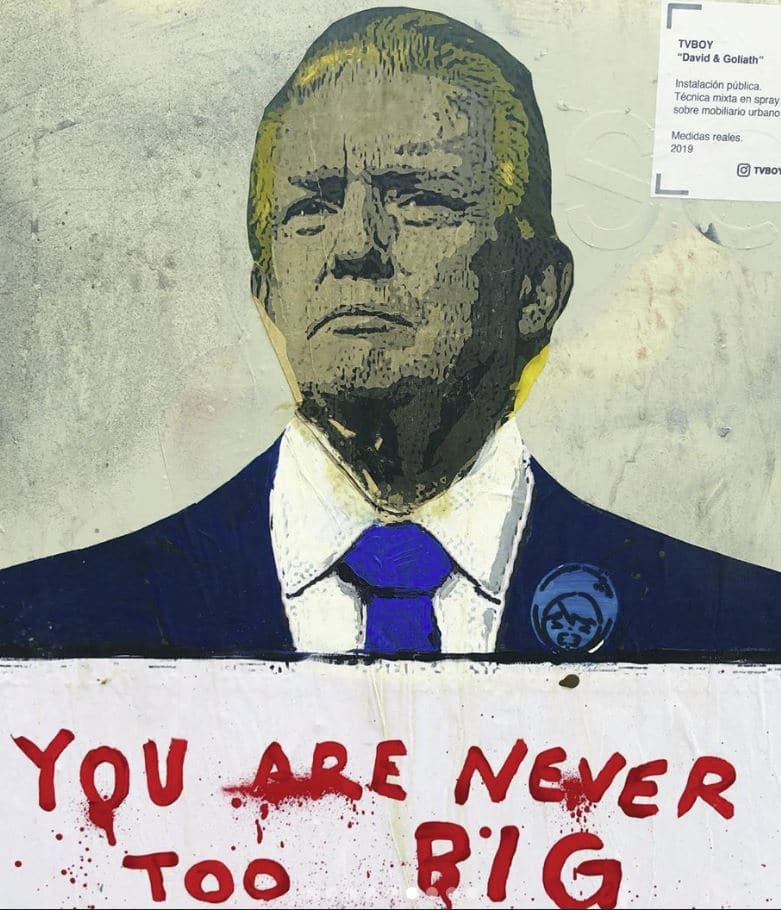 L’artista di strada Tvboy colpisce ancora, e nella notte tra il 26 e il 27 settembre allestisce una nuova opera per le strade di Barcellona: David & Goliath, preparata in occasione dello sciopero globale sul clima di venerdì 27 settembre.