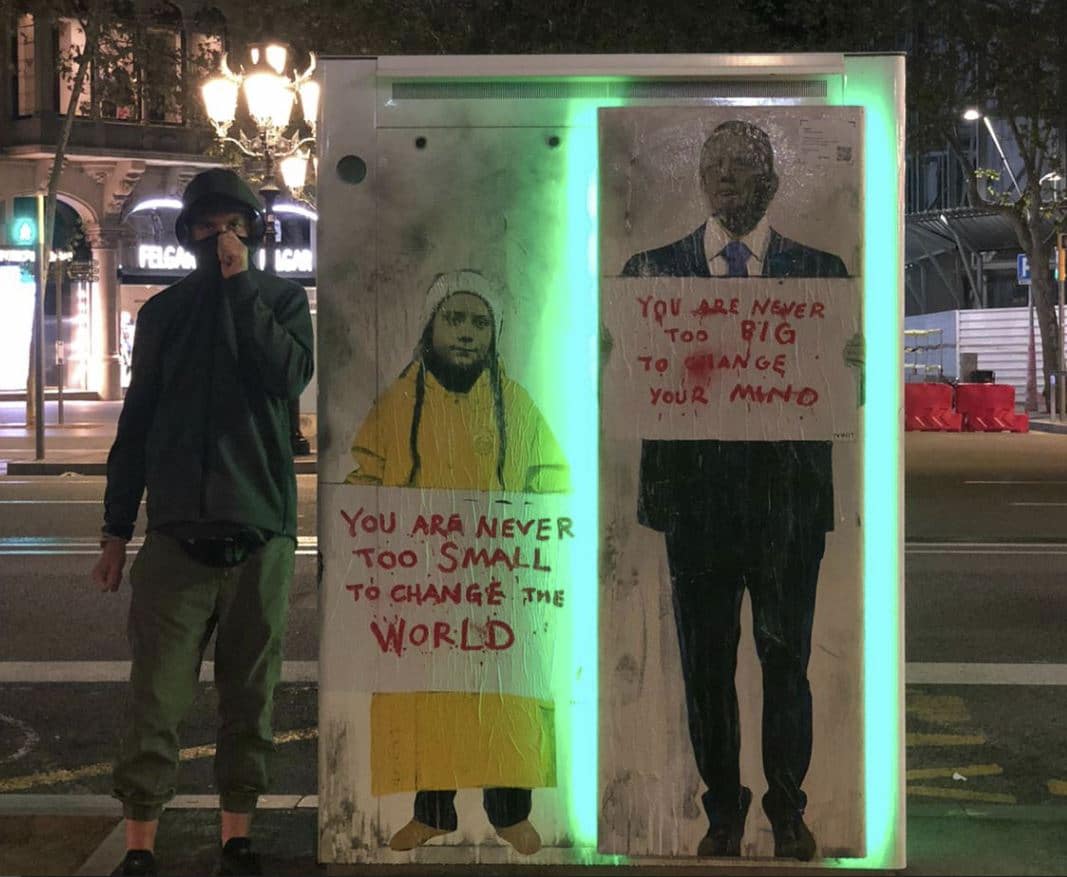 Il nuovo murale di Tvboy a Barcellona con Greta Thunberg e Donald Trump