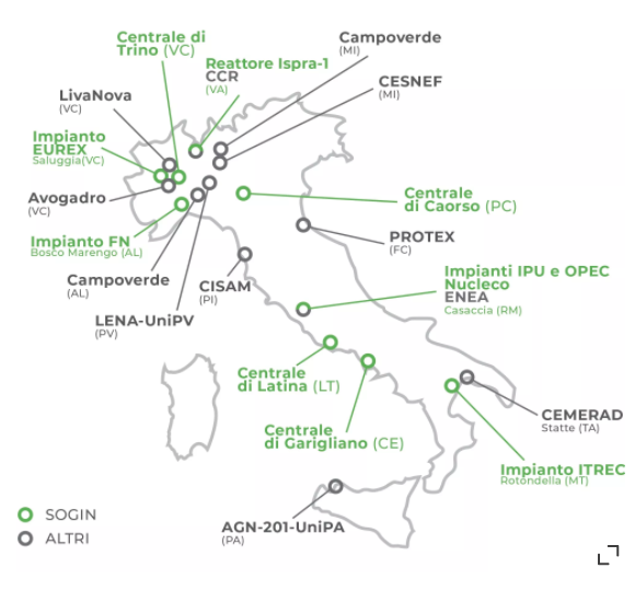 I siti al momento utilizzati sono 20 (per lo più centrali dismesse, laboratori di ricerca e aziende): 4 centrali nucleari in decommissioning, 4 impianti del ciclo del combustibile in decommissioning, 1 reattore di ricerca Ccr-Ispra, 7 centri di ricerca nucleare, 3 centri del Servizio integrato in esercizio, 1 centro del servizio integrato non più attivo.