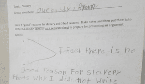 L’insegnante che ha chiesto ai suoi alunni di giustificare la schiavitù in un compito
