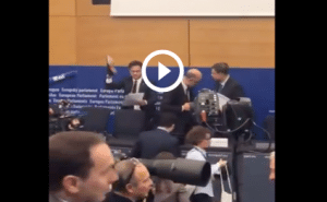 Un europarlamentare della Lega si è tolto una scarpa e ha pestato la lettera Ue che boccia la Manovra | VIDEO