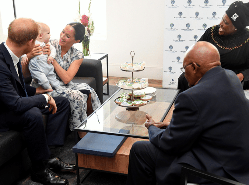 Tra i regali offerti alla famiglia reale, Baby Archie ha ricevuto un libro sul “potere delle parole e il segreto del perdono” in un paniere di regali della Desmond & Leah Tutu Legacy Foundation.