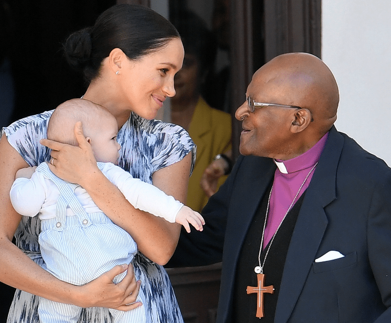 In un video pubblicato su Instagram si vede il celebre Baby Sussex in braccio a Meghan. I genitori hanno portato il piccolo alla visita ufficiale con il primo arcivescovo anglicano nero di Città del Capo (nonché premio Nobel per la pace) Desmond Tutu e la moglie Leah Tutu. Nella didascalia della foto postata su Sussex Royal, l’account Instagram ufficiale di Harry e Meghan, si legge “Arch incontra Archie!”.