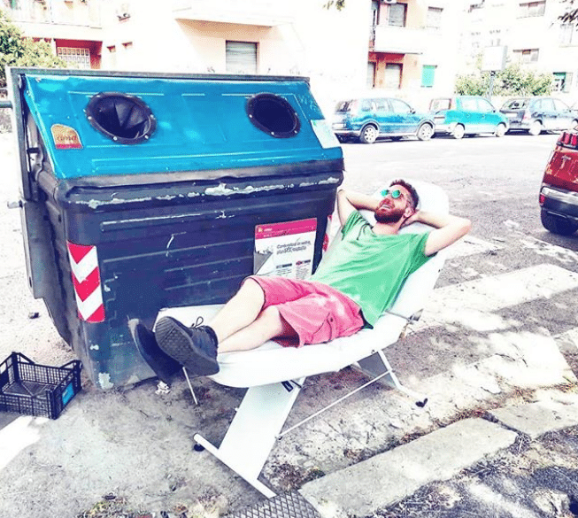 Nel mese di luglio Carlo si è piazzato in via del Corso, nel cuore di Roma, e ha raccolto soldi a passanti e turisti. Lui sdraiato su una brandina a prendere il sole ascoltando musica e davanti a sé il cartello con la scritta in inglese: “Pagami per non fare niente”.