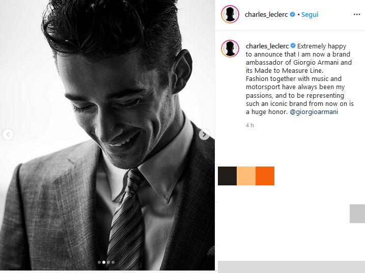 Da pilota a modello, il salto per Charles Leclerc è stato breve. Il pilota monegasco è diventato il nuovo testimonial di Giorgio Armani per la campagna Made to Measure, primavera/estate 2020. Dopo essere diventato prima guida della Ferrari, Charles Leclerc ha deciso di cimentarsi anche nel mondo della moda ed è stato proprio il modello a dare l’annuncio via social. “Sono davvero felice di annunciare di essere ilnuovo brand ambassador di Armani e della sua linea Made to Measure. La moda, insieme alla musica e ai motori, è sempre stata la mia passione. E rappresentare un brand così iconico è per me un onore”, ha spiegato Leclerc.