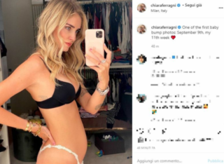 Chiara Ferragni mostra per la prima volta il pancino su Instagram. L’influencer ancora non aveva fatto vedere ai followers il pancino della sua seconda gravidanza e ha deciso di farlo con un post sui social. Sexy con un reggiseno nero e con un mini slip di pizzo Chiara ha fatto vedere le sue prime rotondità.