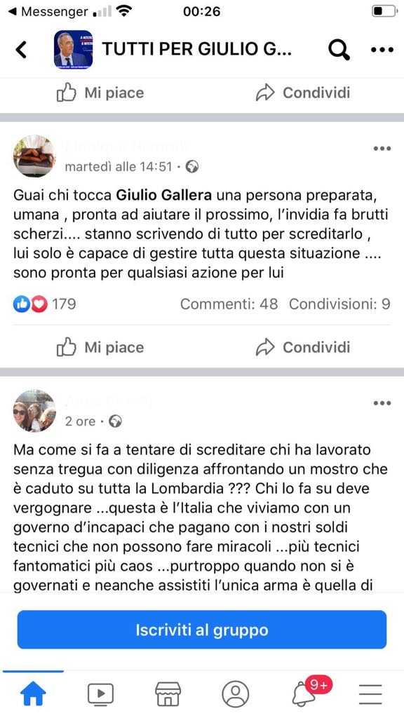 Nel gruppo Facebook si legge: “Guai a chi tocca Giulio Gallera. Sono pronta a tutto per lui”. E su Instagram invece una donna scrive: “Io sono affascinata da Gallera. Peccato che sia di Forza Italia, anche se molto critico”.
