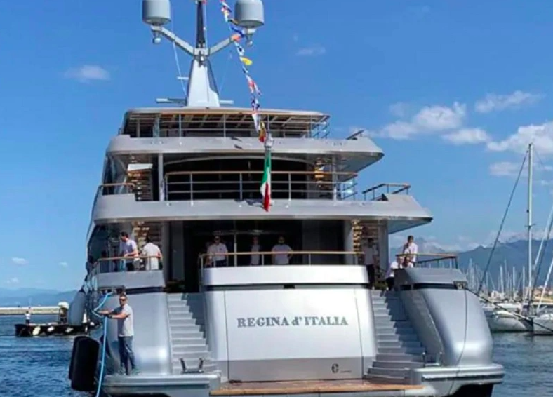Il “Regina d’Italia”, che batte bandiera italiana ed è stato acquistato dai due stilisti attraverso una società di leasing, ha ampi spazi che vogliono offrire contemporaneamente massima visibilità e privacy in tutti gli ambienti, sia esterni che interni. Tra le molte particolarità lo yacht conta due suite armatoriali, 4 cabine ospiti, una palestra e una piscina di 5 metri per due sul ponte sole.