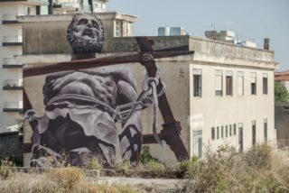 Prima ancora della scoperta del petrolio, prima dei pozzi sfruttati e poi esauriti, l’oro nero di Ragusa era la pietra pece, materiale fossile con grande versatilità di impiego, utilizzato nella costruzione dei palazzi nobiliari e delle chiese barocche, ma anche come idrocarburo e come asfalto destinato all’ammodernamento del manto stradale. Bitume vuole ripercorrere questo tragitto, rileggendo duecento anni di storia attraverso lo sguardo di alcuni fra gli esponenti più rappresentativi del panorama internazionale del muralismo contemporaneo, coinvolti in una ricerca che diventa studio scientifico, tra i capannoni e i container dismessi dell’industria.
