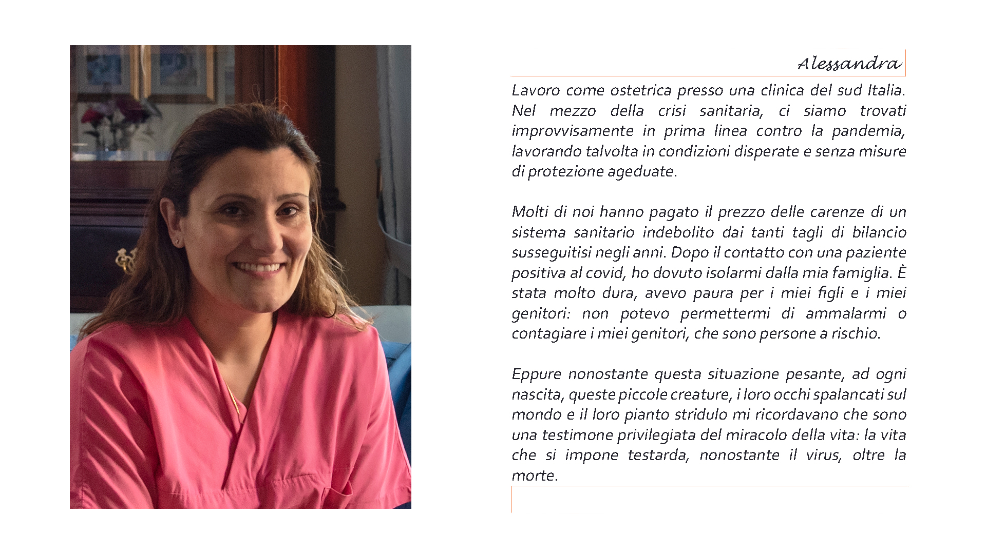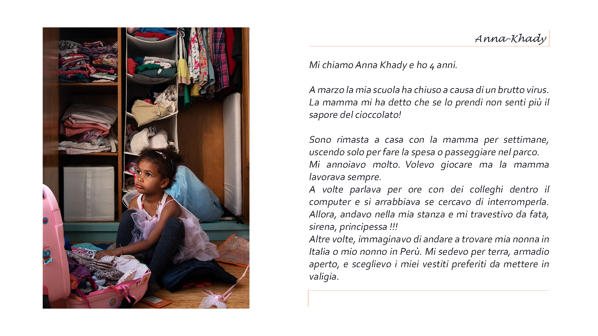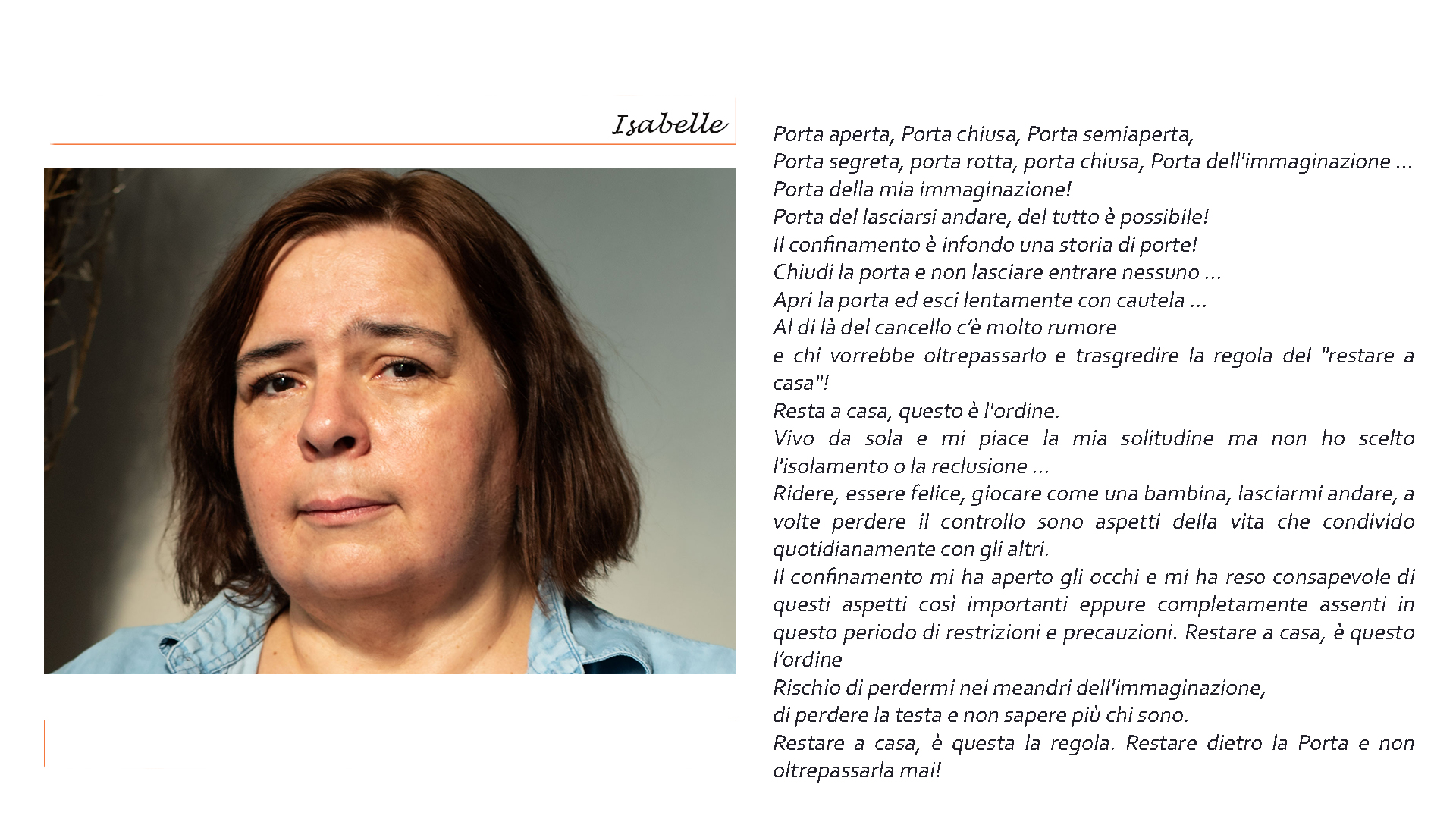 In occasione della Giornata internazionale dei diritti della donna (Festa delle Donne), vi proponiamo il progetto fotografico “Nel buio mi vedo” della fotografa Elisa La Gala. “Milito attraverso la fotografia affinché le donne guadagnino il loro posto legittimo nella società. Nel buio mi vedo è un progetto fotografico che dà voce alle donne e intende far emergere le loro difficoltà e risorse nell’attuale crisi sanitaria ed economica. In tale contesto, la fotografia è diventata strumento di scambio e scoperta. Sono affascinata dal potere quasi terapeutico della macchina fotografica e dalla sua capacità di connettere e creare legami sociali. Entrare per qualche ora nella vita di queste donne, catturando alcuni aspetti della loro storia, mi ha permesso di accorciare le distanze e di ‘evadere dal mio isolamento’”, racconta Elisa La Gala sul suo sito web.