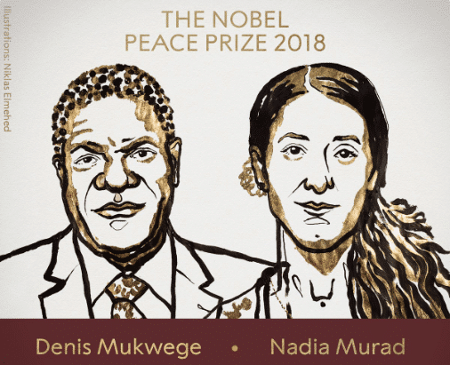 Premio Nobel per la pace 2018: Il 5 ottobre 2018 a Oslo è stato assegnato il premio Nobel per la Pace. Vincitori Denis Mukwege e Nadia Murad per i loro sforzi nel porre fine all’uso della violenza sessuale come arma di guerra e conflitto armato. (Qui abbiamo spiegato cosa sono gli stupri di guerra e che diffusione hanno)