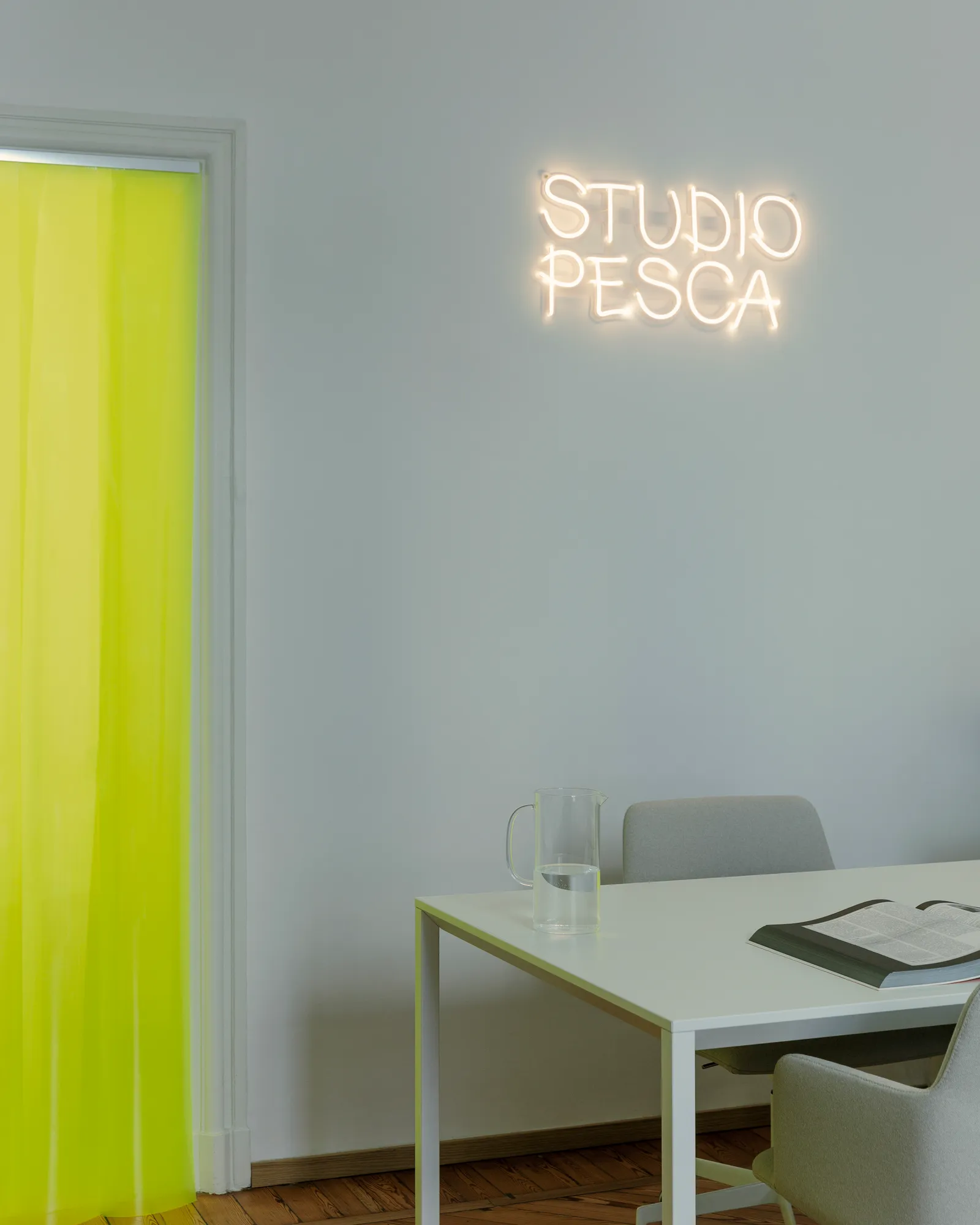 Proprio questa d’altronde è da sempre l’essenza di Studio Pesca: un collettivo di talenti che includono l’art direction, la produzione contenuti, il graphic design, i social media, il web development capace di collaborare con brand di varia natura, nel settore del food & beverage, moda, design e lusso. Intervistata da Ad Italia che ha visitato la nuova sede, Benedetta Gambino ha detto: “È importante esprimere il nostro estro in tutti gli ambiti che si accordano con la nostra natura, dal curare un’occasione conviviale a stringere collaborazioni artistiche. L’obiettivo, infatti, era creare uno spazio creativo per uno studio creativo che potesse vivere e raccogliere altre belle cose, non solo riguardanti le nostre attività, ma anche di altre realtà”.