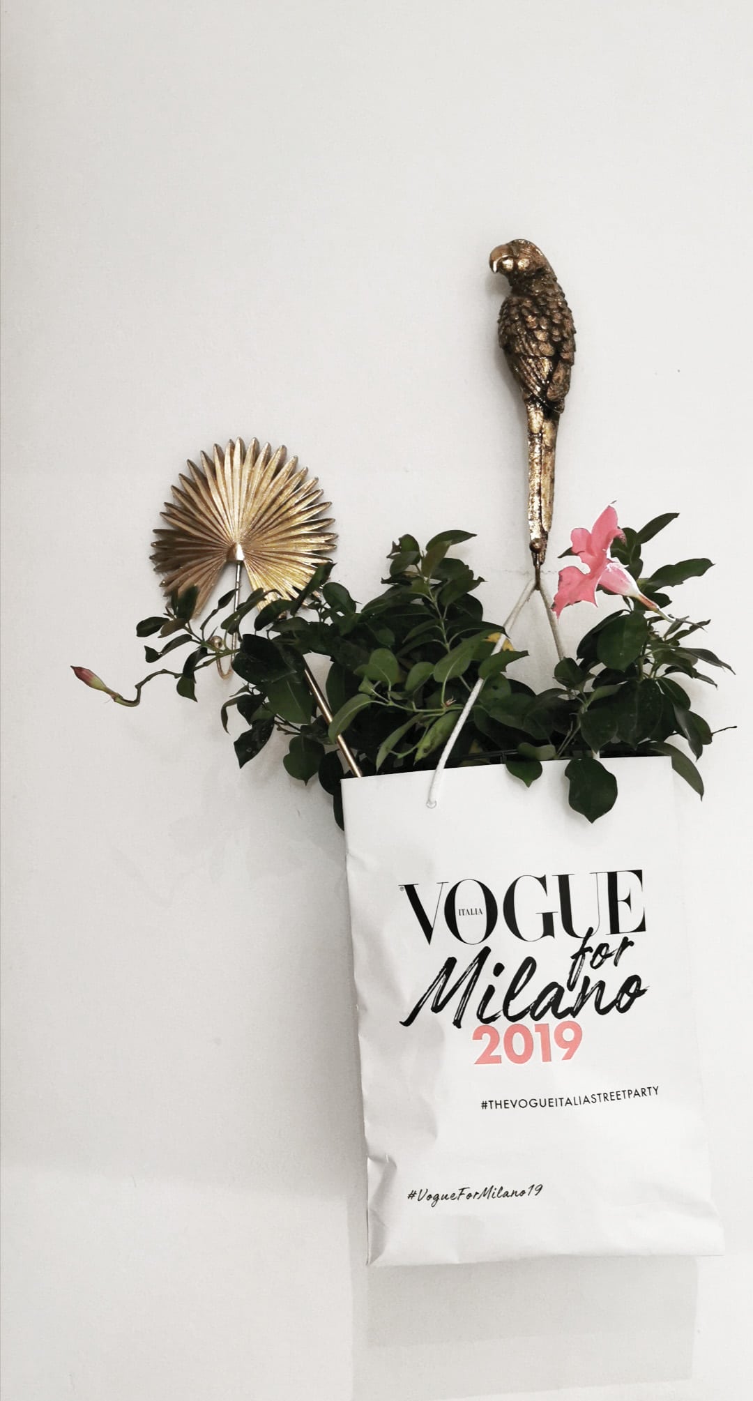 E se invece fosse un sacchetto della Milan Fashion Week del 2019 a venire impreziosito dalla presenza di una Dipladenia al suo interno?
