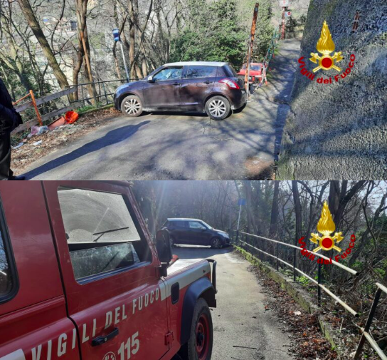 E’ successo sulle alture del quartiere di Bolzaneto di Genova, ed è stato necessario l’intervento dei Vigili del fuoco, che hanno liberato il veicolo grazie all’uso di un argano a mano, permettendo al mezzo di completare la rotazione.