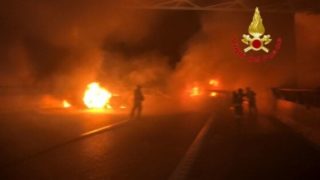 Decine di auto in fiamme sull’autostrada A1: tentato assalto a un portavalori