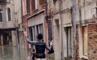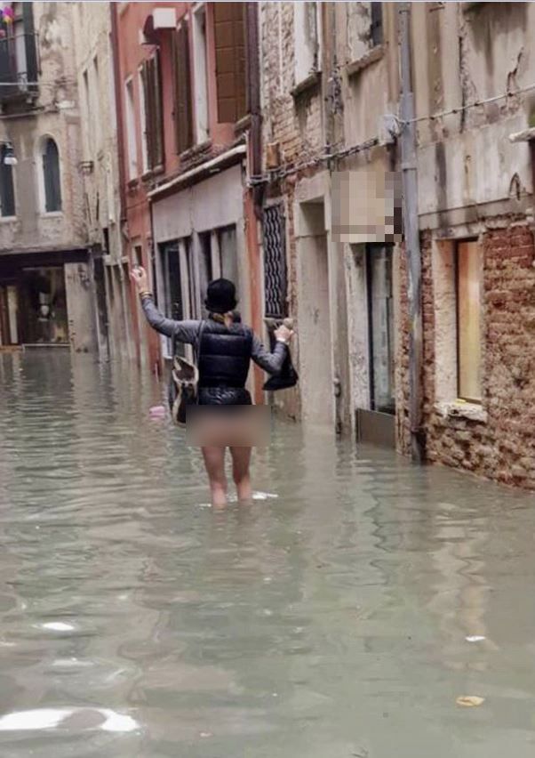 “Venezia in mutande”: la foto della donna che cammina senza indumenti diventa simbolo del disastro naturale
