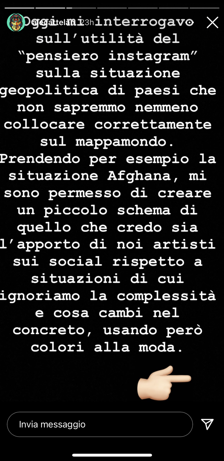 La crisi esplosa in Afgahanistan dopo il ritiro degli Stati Uniti e il ritorno dei talebani nel Paese è oggetto di dibattito anche su Instagram, dove artisti e influencer condividono contenuti per parlare come possono della situazione.
