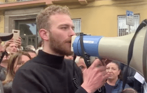 Durante l’iniziativa Antonio Piccirillo ha preso la parola con il megafono, si è presentato e ha pronunciato dure parole di condanna contro la camorra.