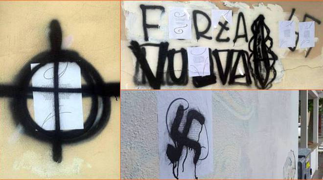 Non lontano dal centro storico è apparsa anche una scritta contro il sindaco di Fiumicino Esterino Montino con accanto anche una svastica: “Montino come Pallotta!”.