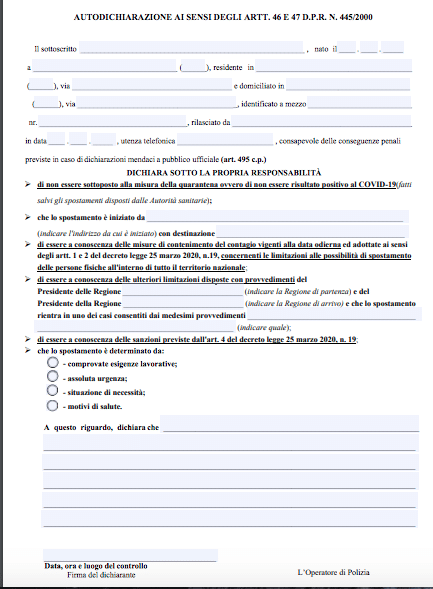 Da oggi, lunedì 18 maggio, per effettuare spostamenti all’interno della propria Regione il modulo di autocertificazione non occorrerà più. Ma attenzione: fino al 3 giugno sarà invece necessario esibirlo per muoversi tra Regioni, dal momento in cui il trasferimento è consentito solo in tre circostanze: salute, lavoro o necessità. Il nuovo modulo di autocertificazione (valido da oggi, 18 maggio 2020) per gli spostamenti tra Regioni è molto simile ai moduli utilizzati in precedenza anche per gli spostamenti in città.