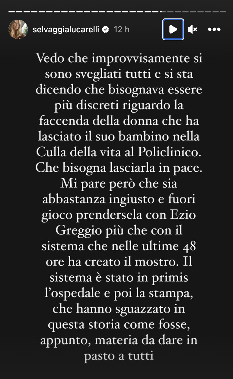 Selvaggia Lucarelli ha commentato il clamore mediatico sulla vicenda di Enea, il bambino abbandonato nella Culla per la vita del Policlinico di Milano.