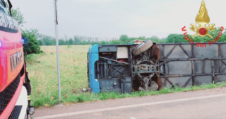 Paura nel bresciano: pullman con 26 studenti a bordo finisce in una scarpata e si ribalta