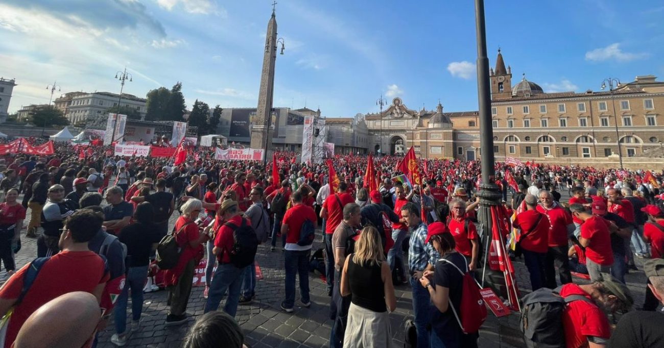Manifestazione Cgil: in piazza spunta lo striscione pro-Gazprom e contro gli Usa
