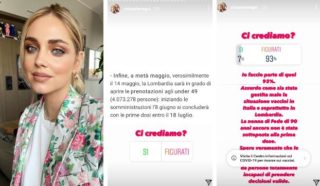 Poi Chiara Ferragni ha attaccato il governatore della Lombardia Attilio Fontana sulla débacle del portale regionale Aria, ora sostituito dalla piattaforma Poste entrata in funzione oggi: “Doveva gestire le convocazioni dei cittadini da vaccinare, ma i suoi sistemi informatici non sono stati in grado di gestire i dati delle Asst e Ats, e hanno sbagliato a collocare le persone nell’hub vaccinale più vicino“, scrive nelle stories.