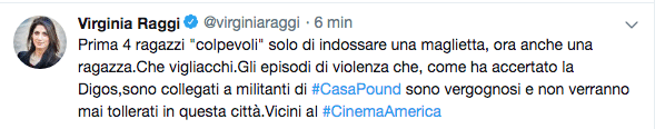 Immediate anche le reazioni politiche al nuovo fatto di cronaca con la sindaca di Roma Virginia Raggi, che su Twitter ha condannato l’episodio.