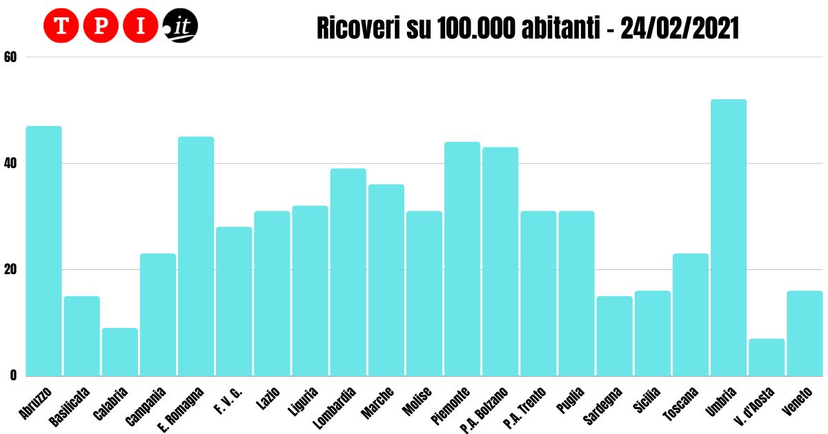 I dati dei ricoveri su 100mila abitanti (24.02.2021)