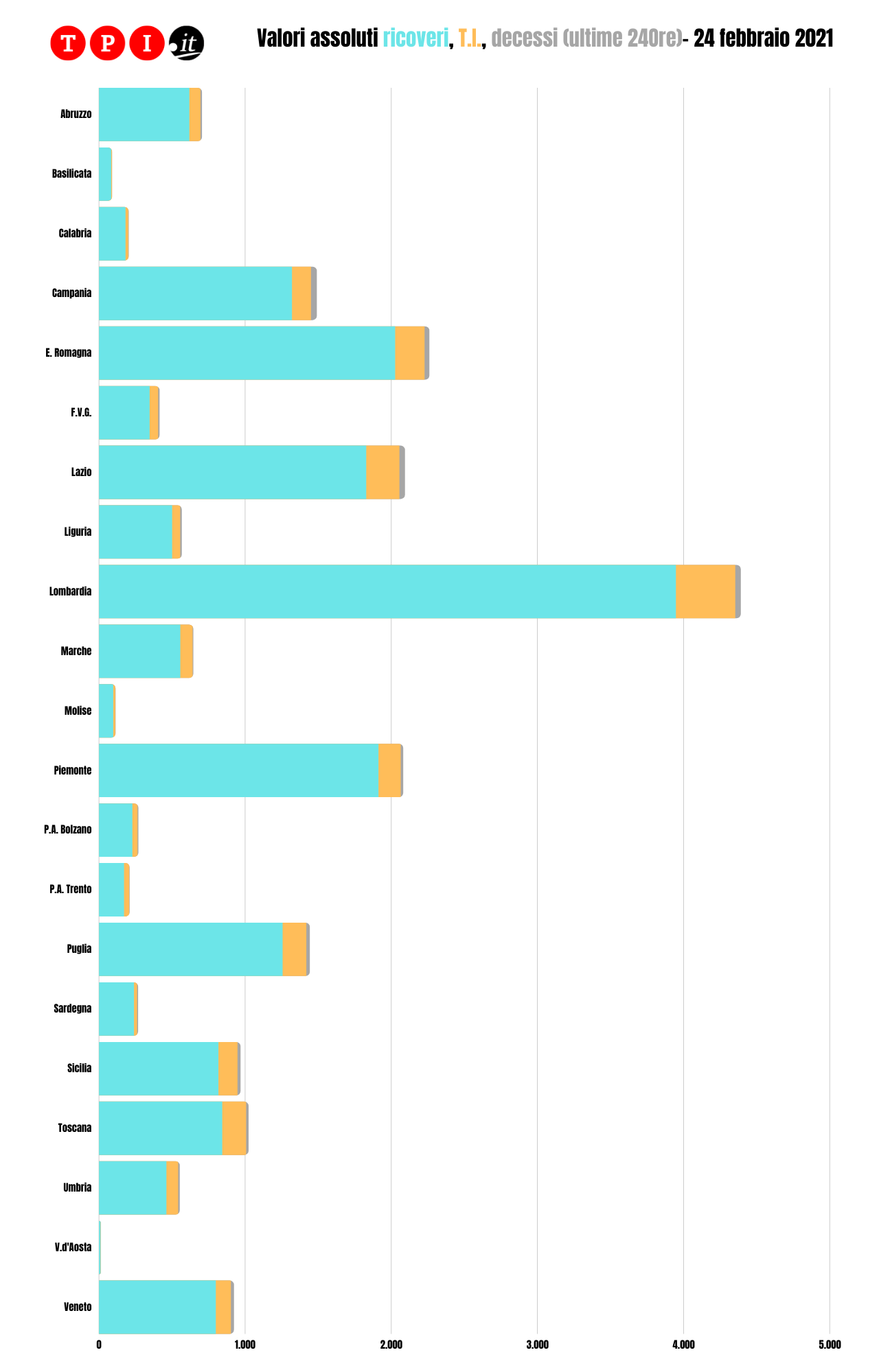 I dati assoluti su ricoveri, terapie intensive e decessi Regione per Regione
