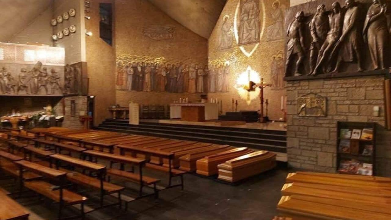 Coronavirus, a Bergamo bare allineate in Chiesa in attesa di sepoltura | FOTO