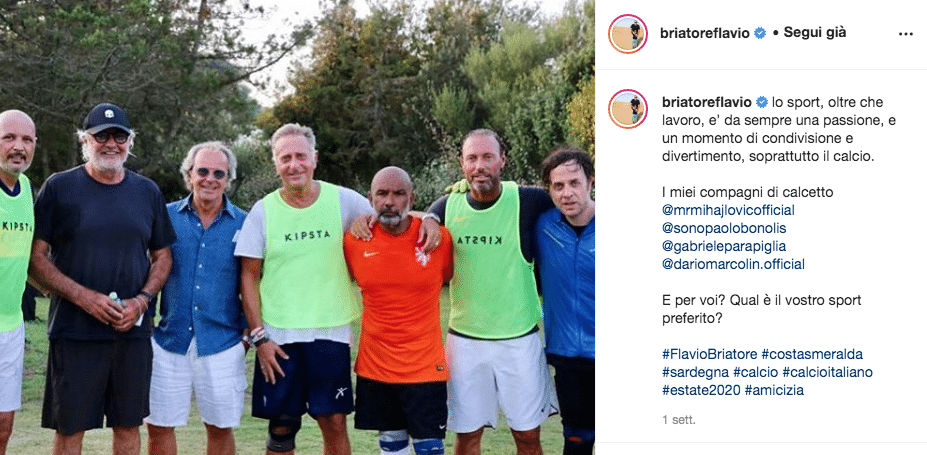 Briatore positivo al Coronavirus, la foto con Mihajilovic e Bonolis sul campo da calcetto
