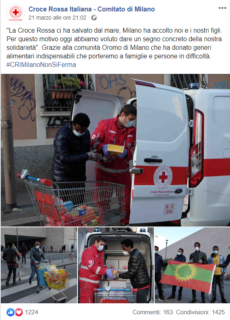 La comunità etiope Oromo di Milano ha donato beni alimentari alla Croce Rossa, per esprimere vicinanza e solidarietà alla città colpita dall’emergenza Coronavirus: una spesa solidale composta da carrelli ricolmi di beni alimentari a lunga scadenza e prodotti per l’infanzia.