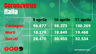 Come ogni giorno, anche oggi, sabato 11 aprile 2020, il capo della Protezione civile Angelo Borrelli ha fornito nella consueta conferenza stampa delle ore 18 i dati relativi all’epidemia di Coronavirus in Italia contenuti nell’ultimo bollettino. Questi i nuovi dati aggiornati letti da Borrelli.