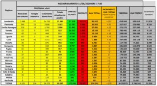 Dopo la decisione di sospendere definitivamente la consueta conferenza stampa delle 18, i dati inerenti all’emergenza Coronavirus in Italia vengono diramati attraverso un bollettino diffuso sul sito internet della Protezione Civile. Questi i numeri del bollettino di oggi, giovedì 11 giugno.